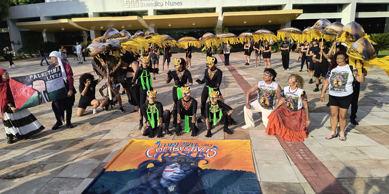 “A nossa intenção é que a Boiuna enterre os combustíveis fósseis. Já que ela está embaixo de Belém sustentando essa terra, ela vai afundar, vai levar, vai engolir simbolicamente os combustíveis fósseis”, disse Inês.